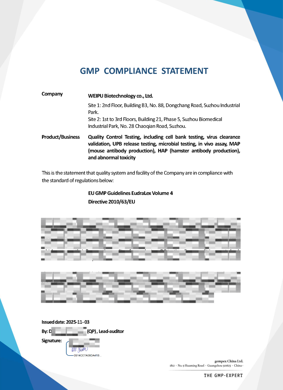 ▲ 微谱生物科技正式取得EU GMP QP符合性声明